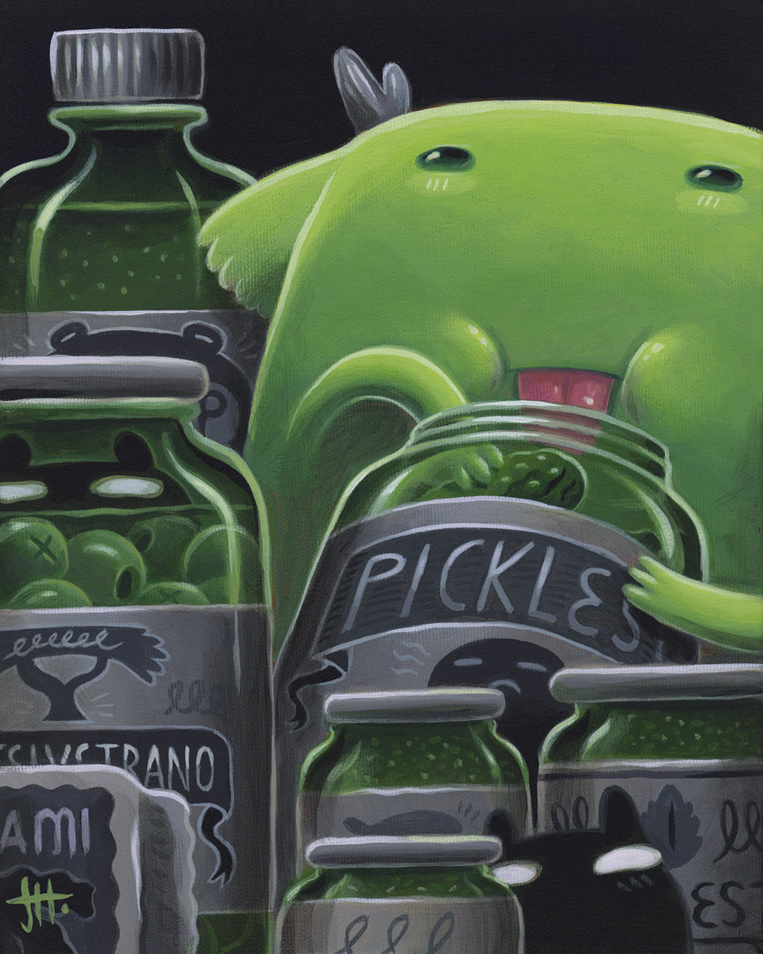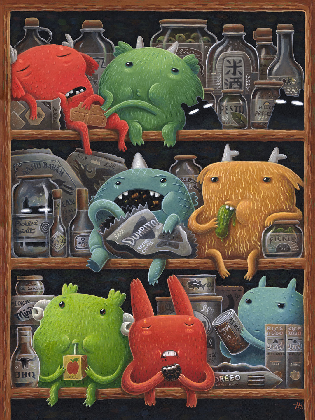 Imps and Monsters art prints, by Pacific Northwest artist Justin Hillgrove. These captivating prints showcase his whimsical acrylic paintings, featuring delightful themes and characters like cats, robots, forest creatures and spirits, squid / octopus and rubber ducks. Explore artwork inspired by Red Riding Hood, nostalgia, pop culture, classic movies, Studio Ghibli, Where the Wild Things Are, Charlie Brown, and more.