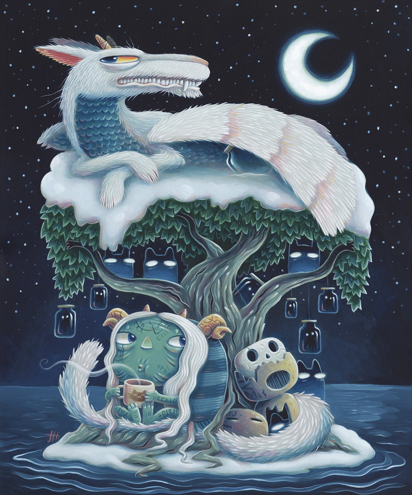 The Isle series began as a collection of sketches depicting an island with a tree, where a dragon rests in its boughs, alongside a matronly elder goddess of nature, akin to Mother Nature, Gaia, or Mother Winter. The Isles don’t reference any specific tales or lore, though I gave the characters Nordic names; rather, they represent aspects of the nature spirits that exist in the lore within my mind.