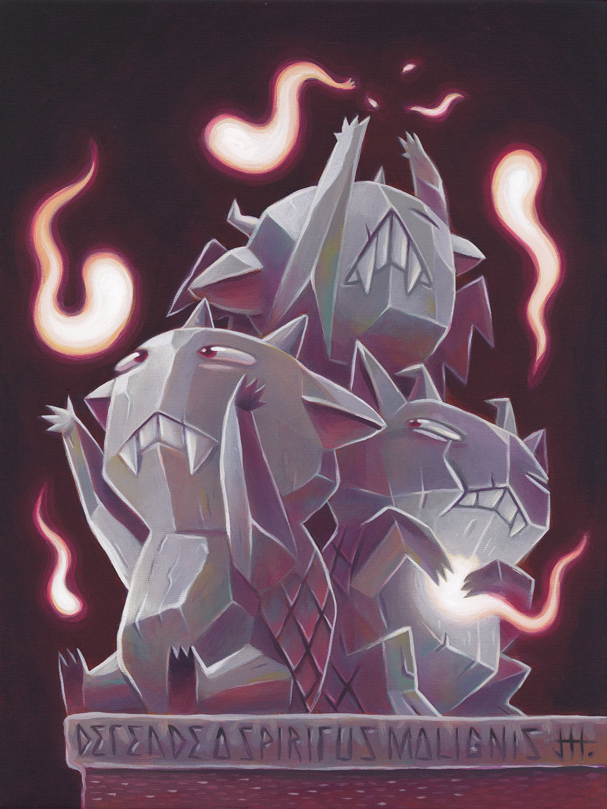 Un Meurtre De Corbeaux was an exercise in enjoying painting again. I hadn’t painted in a couple of months and was having a hard time getting back into it, so I wanted to try something fun—something just for me. I scribbled some crows hanging out around a skull, which felt like a can’t-miss subject. (I love watching the crows that hang out with our chickens, and live and play in our yard). It was a joy to paint, and a real relief to lose myself in a piece again.