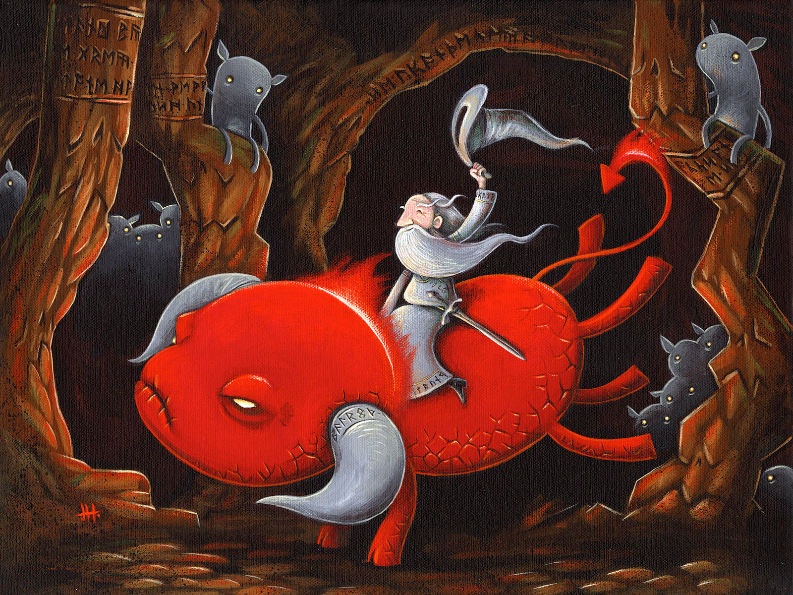 I painted Calcifer's Secret for a 2013 exhibition I participated in with fellow artist Mike Capp at LTD Gallery in Seattle. The show was titled Icons and Influences and paid homage to the books, films, and other media that inspired and shaped our art and creative processes. This piece is a tribute to Calcifer, a fire demon from Studio Ghibli / Hayao Miyazaki's adaptation of Howl's Moving Castle. Calcifer is my favorite character from the film, and the book, written by Diana Wynne Jones, is one of my all-time favorites.